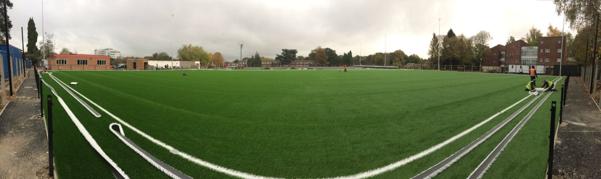 The new image is another wide angle one which shows all the artificial surface laid and work ongoing to ‘cut in’ pitch markings.